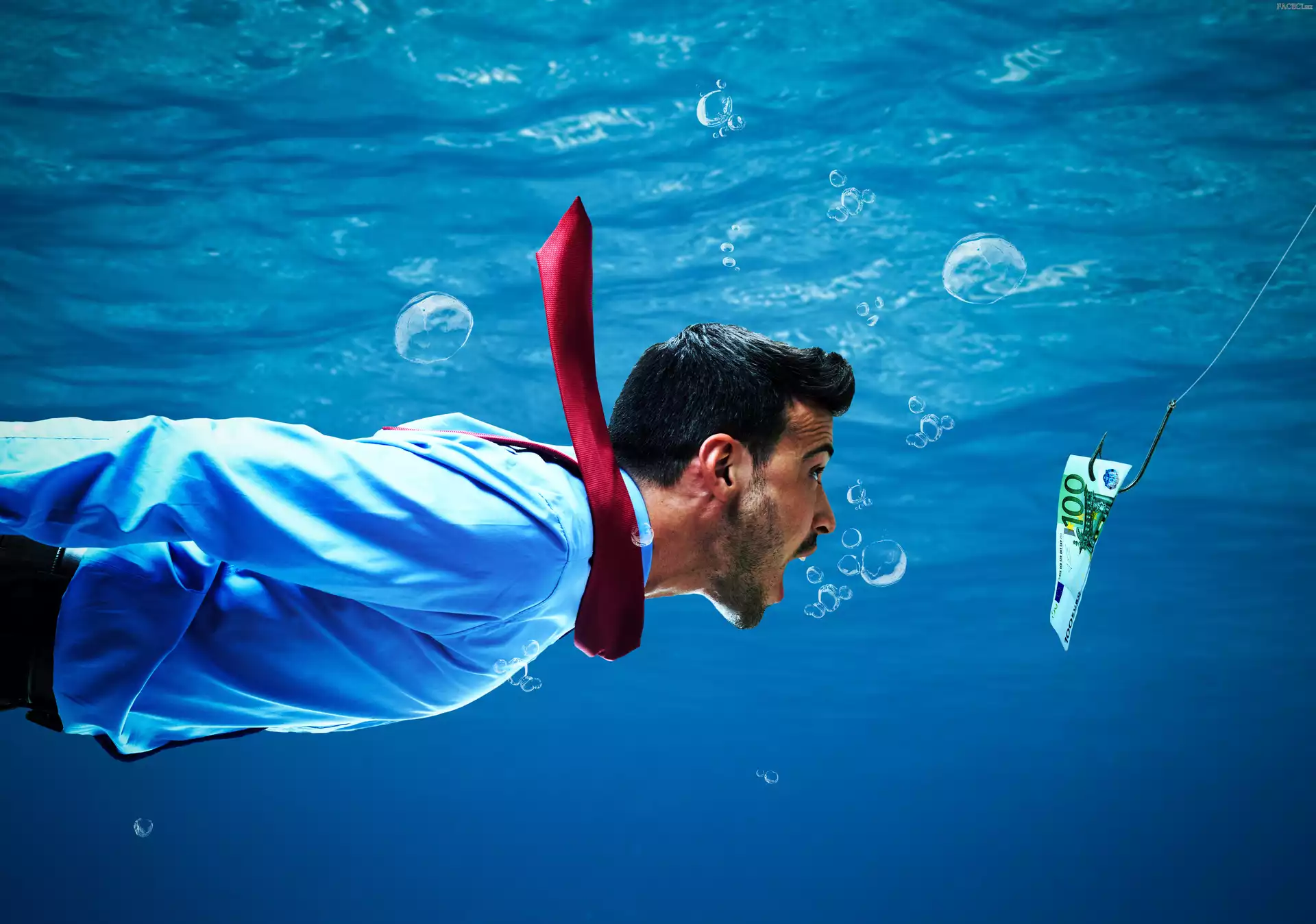 Banknot, Śmieszne, Mężczyzna, Haczyk